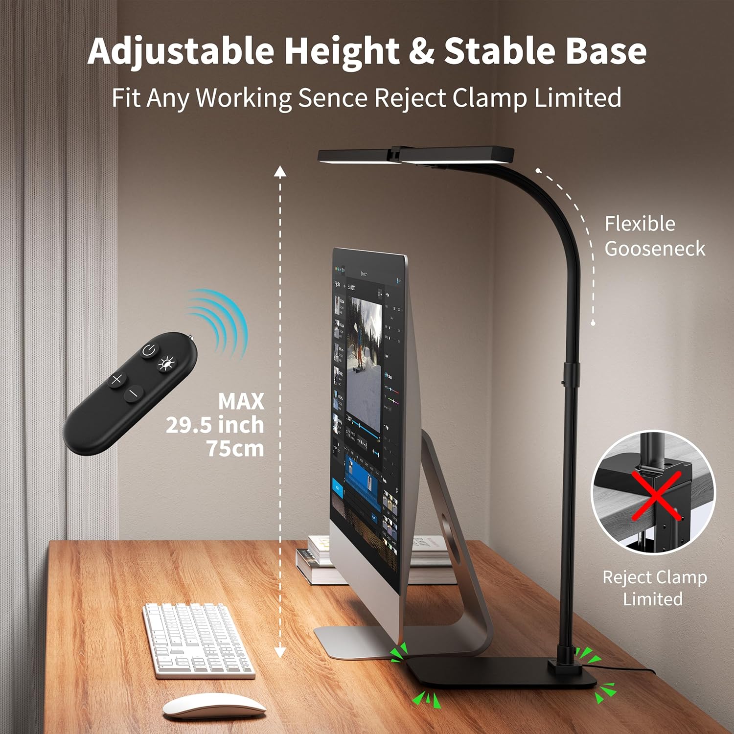 Desk Lamp Architect Task Dual Head Modern Flexible Gooseneck Tall Dimmable Light for Home Office, 5 Color Modes,Remote Control, 1500lm 24W Extra Bright Lighting
